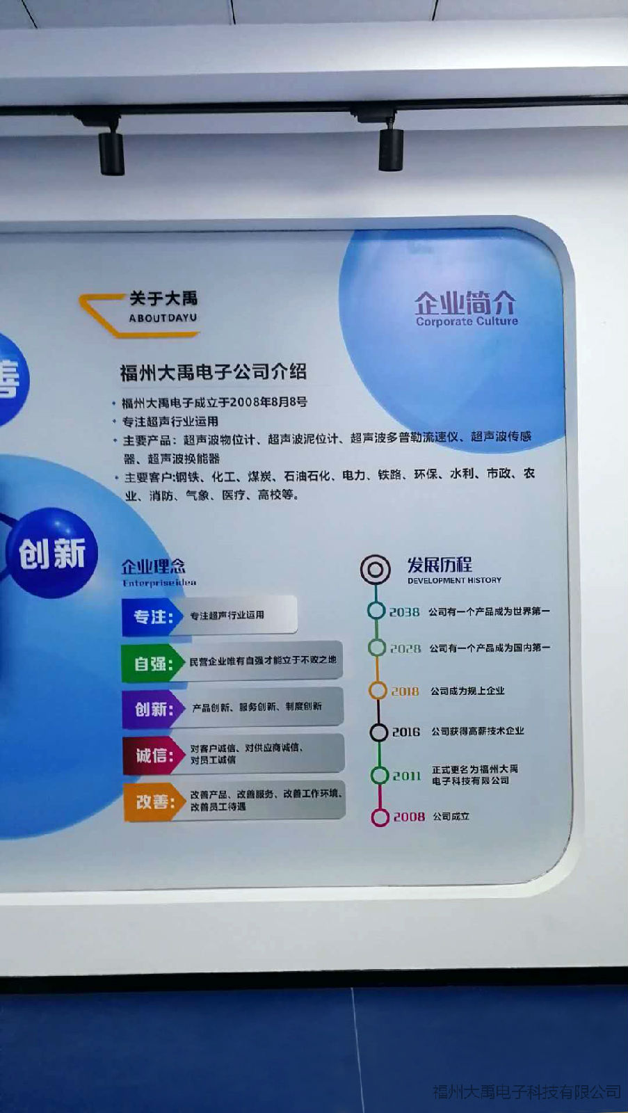 2018是個(gè)好年頭,習(xí)大大常說:讓美好愿景變?yōu)楝F(xiàn)實(shí)?,F(xiàn)在,大禹電子實(shí)現(xiàn)了許久以來我們這些超聲波大禹人的美好理想及追求。自2016年大禹電子被評(píng)為福建省高新技術(shù)企業(yè)以來,通過我們堅(jiān)持不懈的努力,公司又開發(fā)了近幾十款新型的換能器及高品質(zhì)的超聲波液位計(jì)新款,以及超聲波多普勒流量計(jì)小型流量計(jì)。近來,新的展廳也順利完成!分別展出本公司生產(chǎn)的眾多超聲波產(chǎn)品系列。